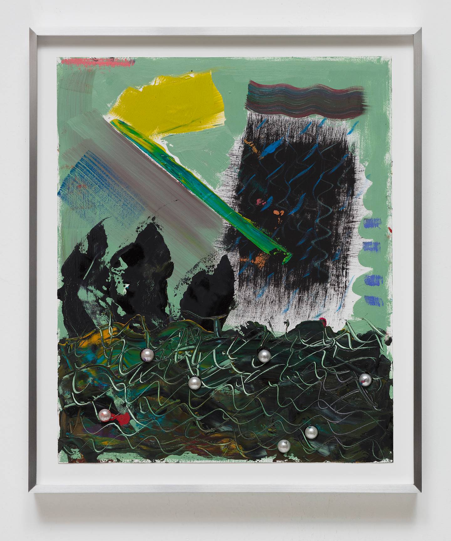 UntitledOil and faux pearls on gessoed paper, 17"x14" (unframed)
